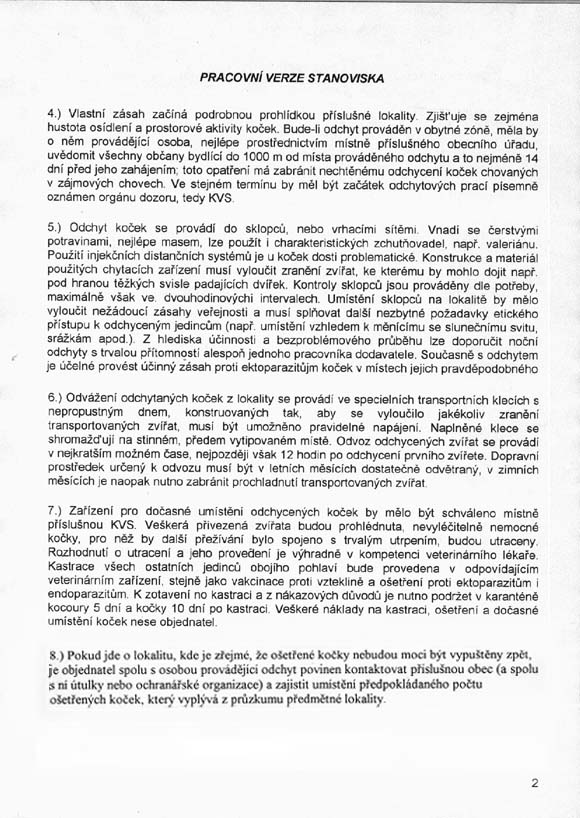 doručení Pracovní verze metodiky – stanoviska ÚKOZ k problematice regulace přemnožených kočičích populací,